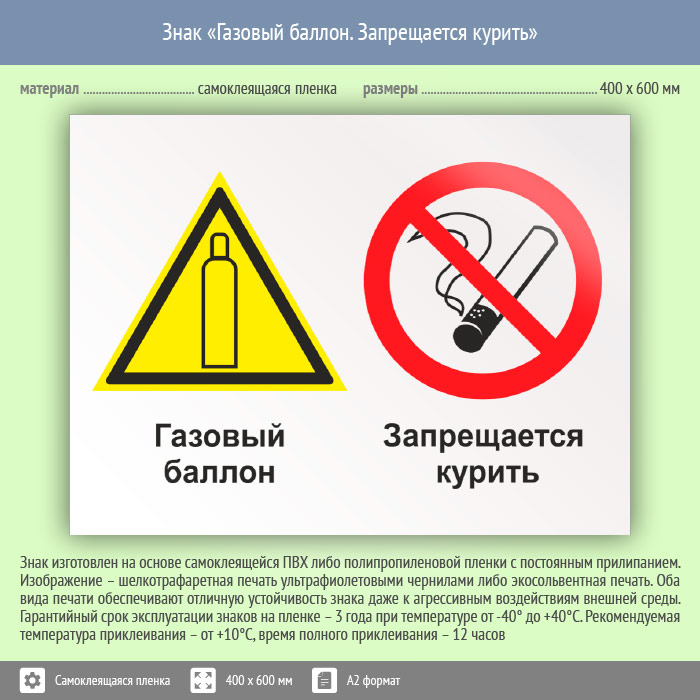 Знак «Газовый баллон. Запрещается курить», КЗ-18 (пленка, 600х400 мм) в Химках купить