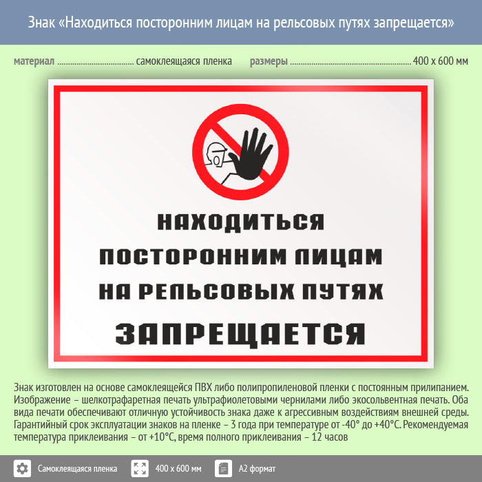 Знак «Находиться посторонним лицам на рельсовых путях запрещается», КЗ-25 (пленка, 600х400 мм) в Химках купить