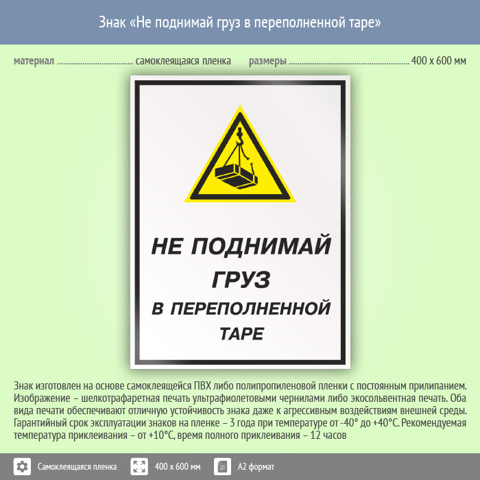 Знак «Не поднимай груз в переполненной таре», КЗ-26 (пленка, 400х600 мм) в Химках купить