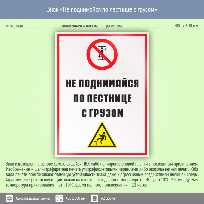 Знак «Не поднимайся по лестнице с грузом», КЗ-28 (пленка, 400х600 мм) в Химках купить
