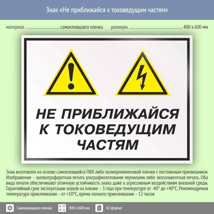Знак «Не приближайся к токоведущим частям», КЗ-29 (пленка, 600х400 мм) в Химках купить