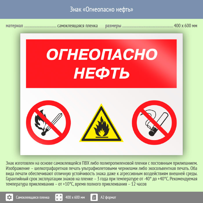 Знак «Огнеопасно нефть», КЗ-31 (пленка, 600х400 мм) в Химках купить