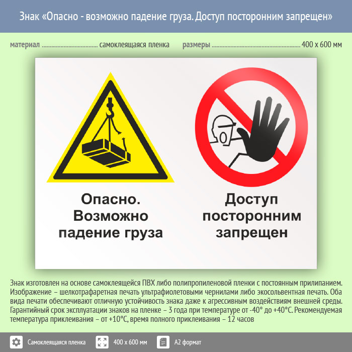 Знак «Опасно - возможно падение груза. Доступ посторонним запрещен», КЗ-33 (пленка, 600х400 мм) в Химках купить