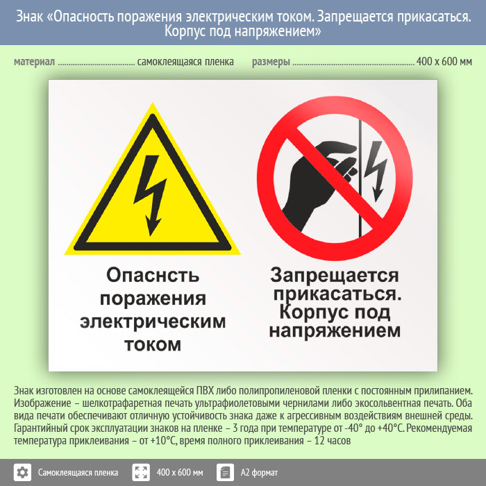 Знак «Опасность поражения электрическим током. Запрещается прикасаться. Корпус под напряжением», КЗ-47 (пленка, 600х400 мм) в Химках купить