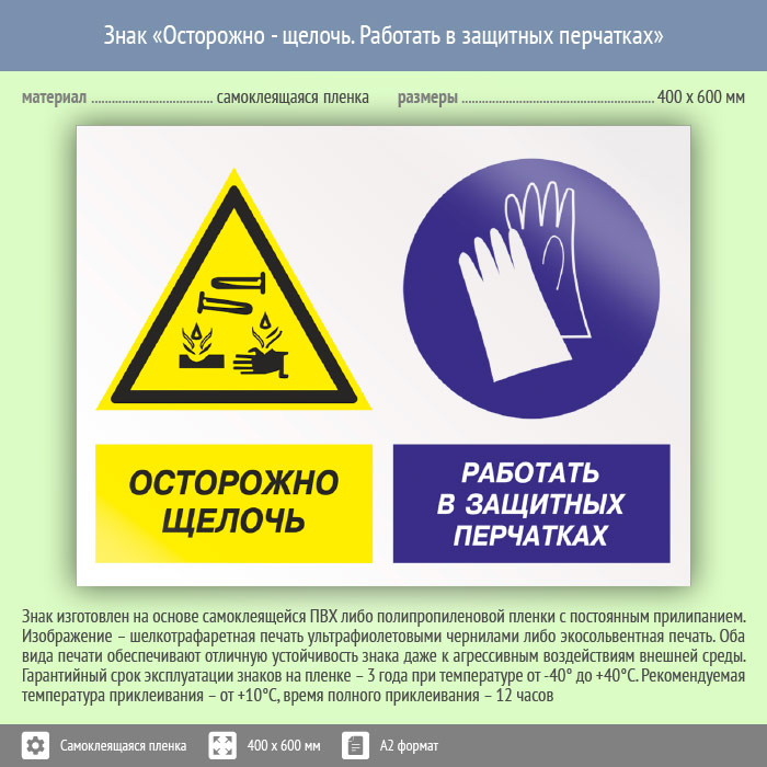 Знак «Осторожно - щелочь. Работать в защитных перчатках», КЗ-60 (пленка, 600х400 мм) в Химках купить