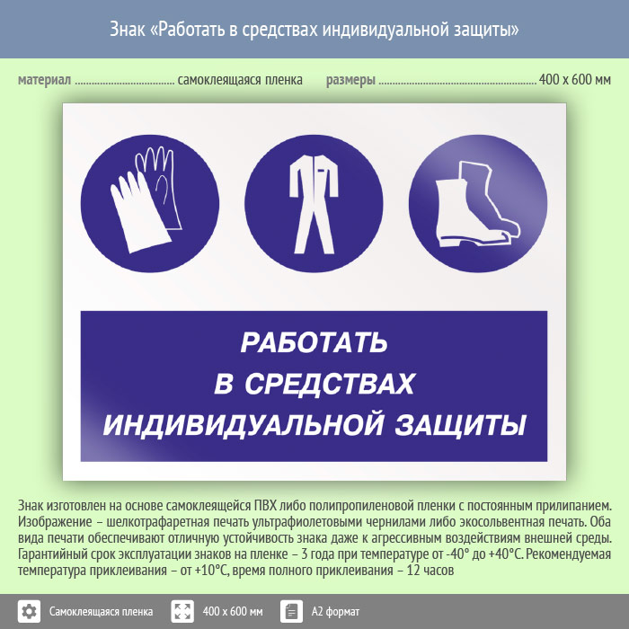 Знак «Работать в средствах индивидуальной защиты», КЗ-81 (пленка, 600х400 мм) в Химках купить