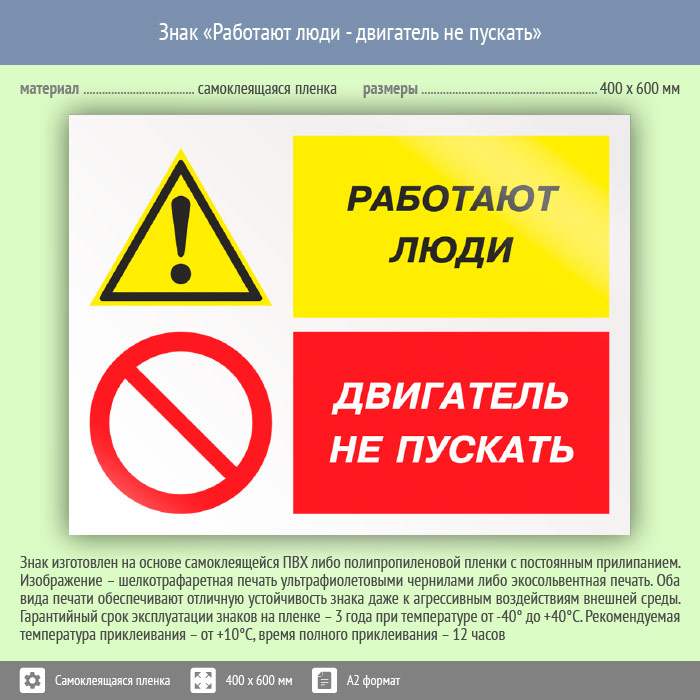 Знак «Работают люди - двигатель не пускать», КЗ-82 (пленка, 600х400 мм) в Химках купить