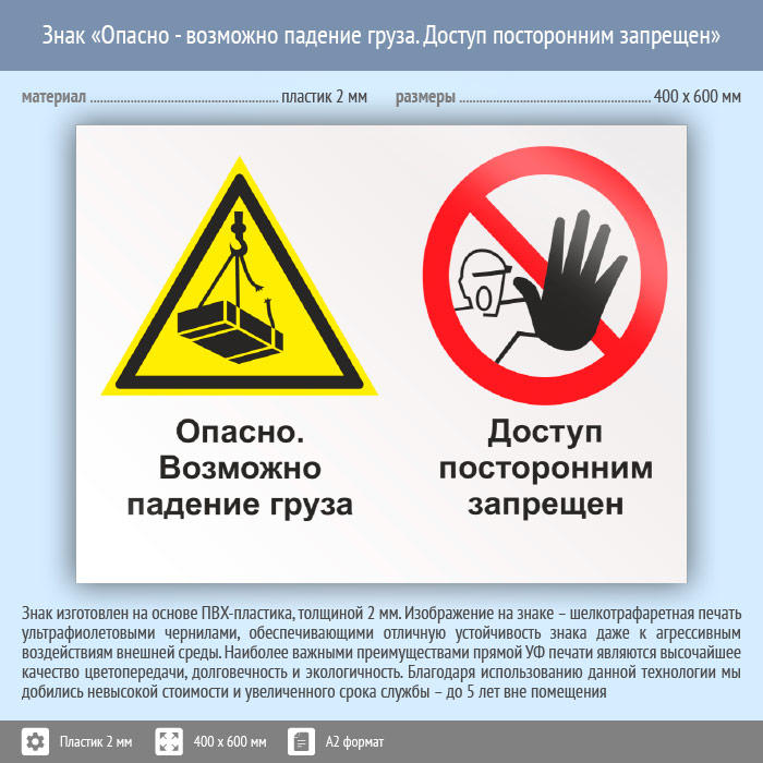 Знак «Опасно - возможно падение груза. Доступ посторонним запрещен», КЗ-33 (пластик, 600х400 мм) в Химках купить