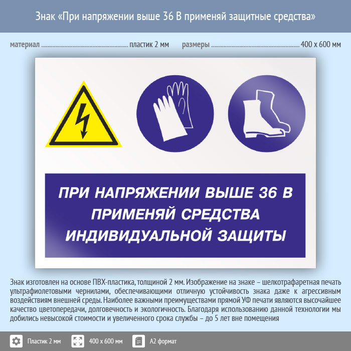 Знак «При напряжении выше 36 В применяй защитные средства», КЗ-71 (пластик, 600х400 мм) в Химках купить