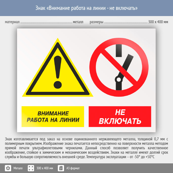 Знак «Внимание работа на линии - не включать», КЗ-16 (металл, 400х300 мм) в Химках купить