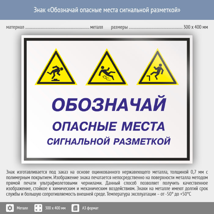 Знак «Обозначай опасные места сигнальной разметкой», КЗ-30 (металл, 400х300 мм) в Химках купить
