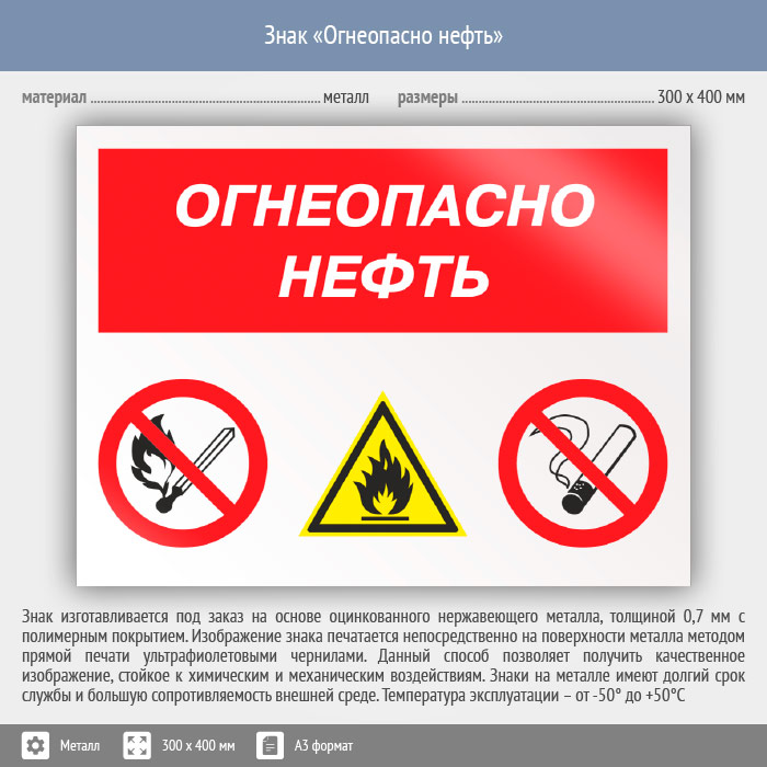 Знак «Огнеопасно нефть», КЗ-31 (металл, 400х300 мм) в Химках купить