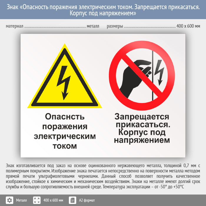 Знак «Опасность поражения электрическим током. Запрещается прикасаться. Корпус под напряжением», КЗ-47 (металл, 600х400 мм) в Химках купить