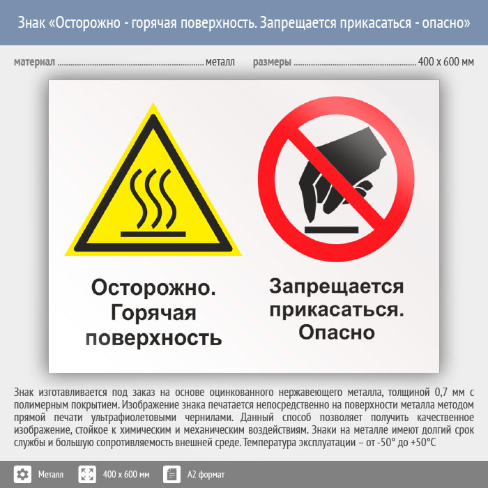 Знак «Осторожно - горячая поверхность. Запрещается прикасаться - опасно», КЗ-54 (металл, 600х400 мм) в Химках купить