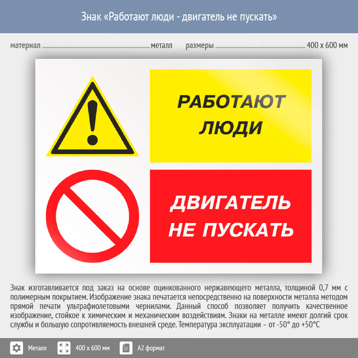 Знак «Работают люди - двигатель не пускать», КЗ-82 (металл, 600х400 мм) в Химках купить