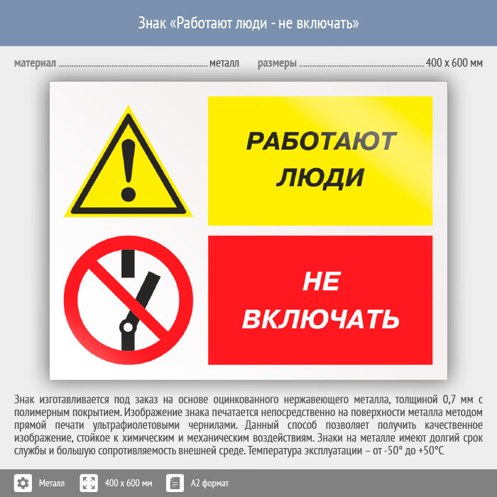 Знак «Работают люди - не включать», КЗ-83 (металл, 600х400 мм) в Химках купить