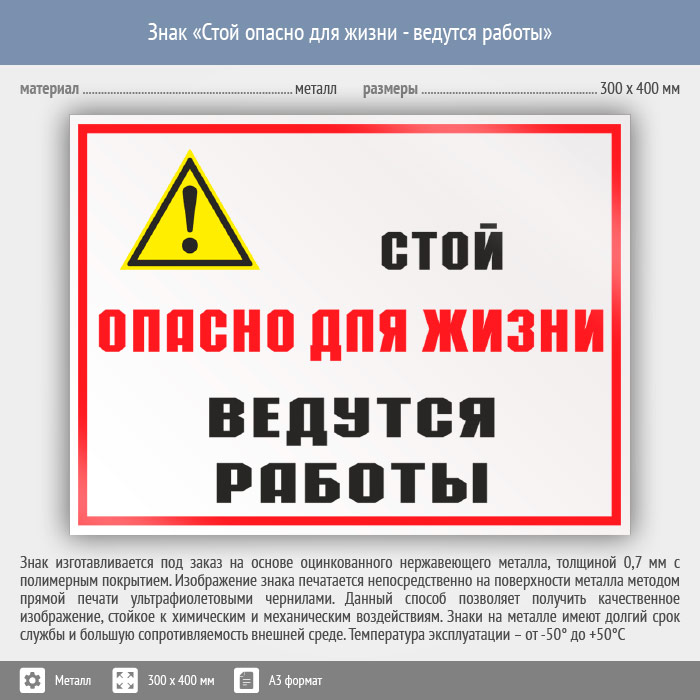 Знак «Стой опасно для жизни - ведутся работы», КЗ-86 (металл, 400х300 мм) в Химках купить