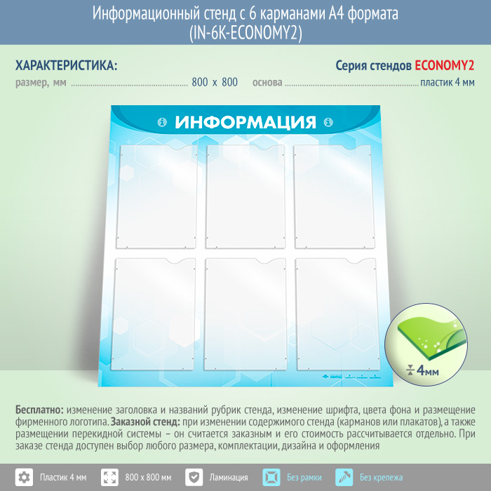 Информационный стенд с 6 карманами А4 формата (IN-6K-ECONOMY2) в Химках купить