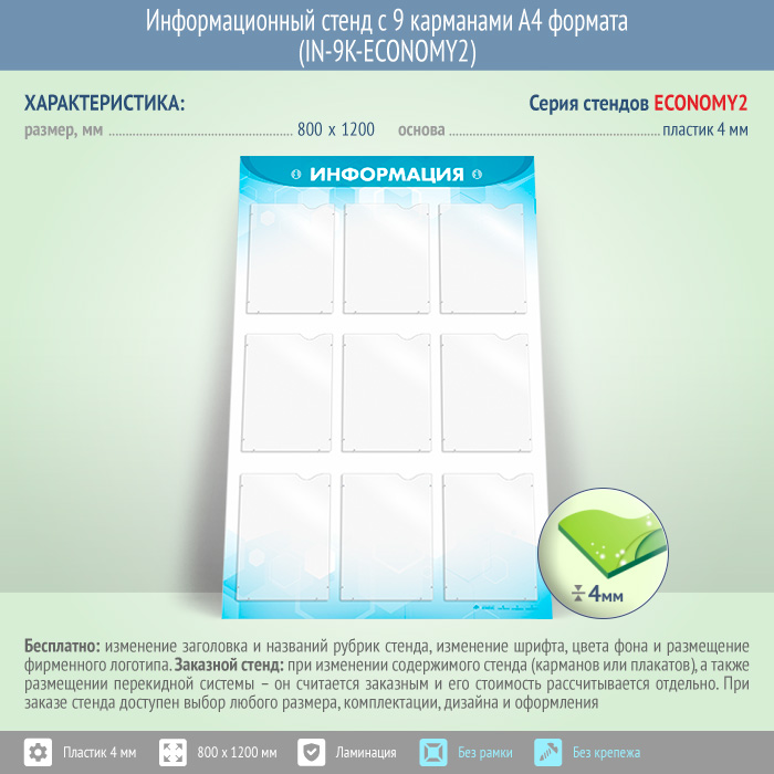 Информационный стенд с 9 карманами А4 формата (IN-9K-ECONOMY2) в Химках купить