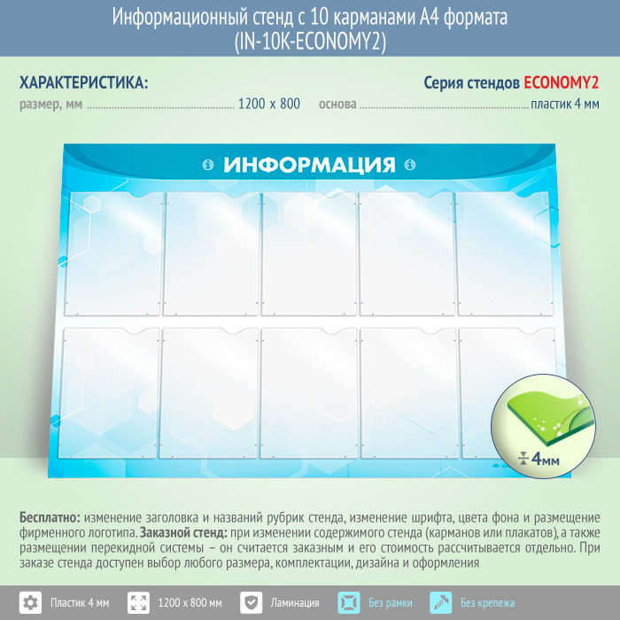 Информационный стенд с 10 карманами А4 формата (IN-10K-ECONOMY2) в Химках купить