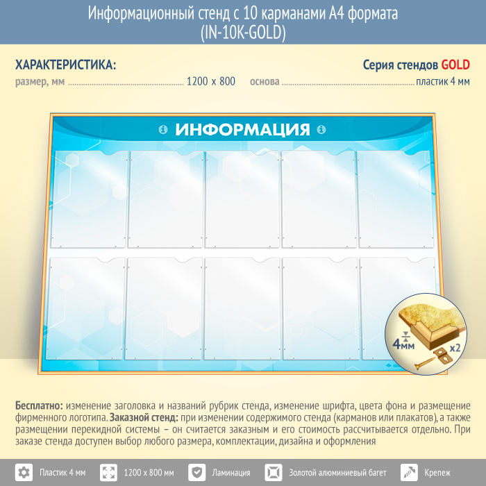 Информационный стенд с 10 карманами А4 формата (IN-10K-GOLD) в Химках купить