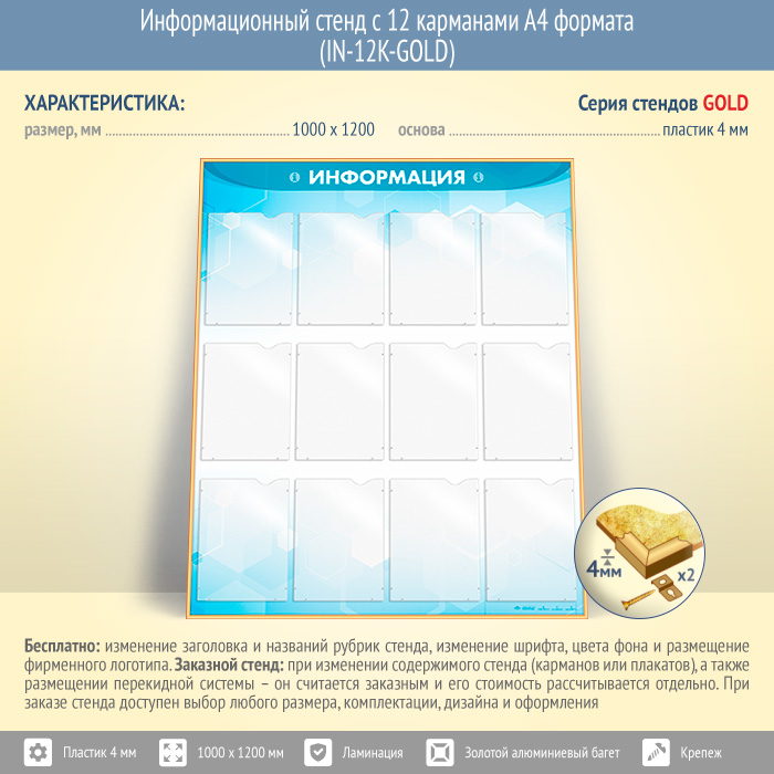 Информационный стенд с 12 карманами А4 формата (IN-12K-GOLD) в Химках купить