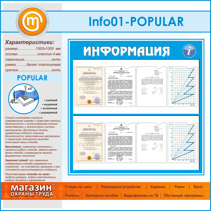 Стенд «Информация» с 8 карманами А4 формата (IN-01-POPULAR) в Химках купить
