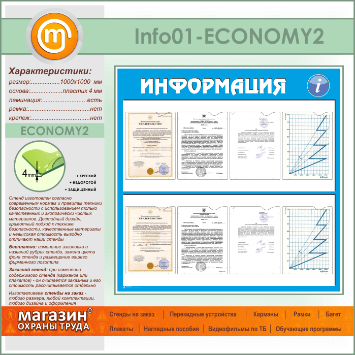 Стенд «Информация» с 8 карманами А4 формата (IN-01-ECONOMY2) в Химках купить
