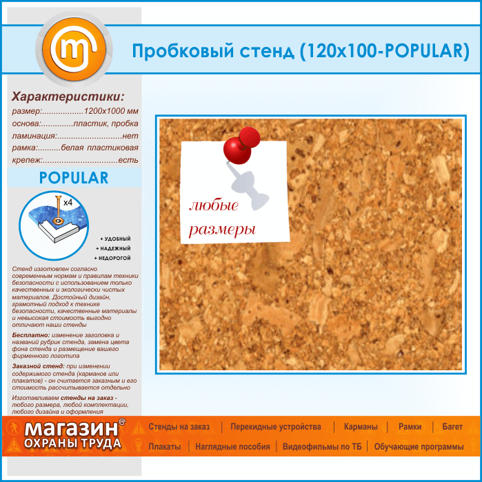 Пробковая доска, 120х100 см (IN-05-POPULAR) в Химках купить