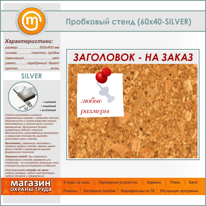 Пробковая доска с заголовком, 60х40 см (IN-06-SILVER) в Химках купить