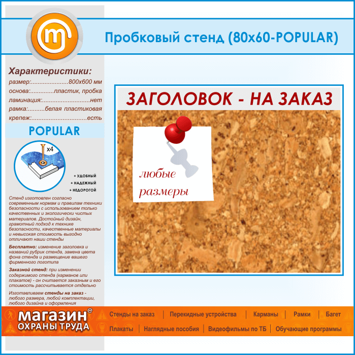 Пробковая доска с заголовком, 80х60 см (IN-06-POPULAR) в Химках купить