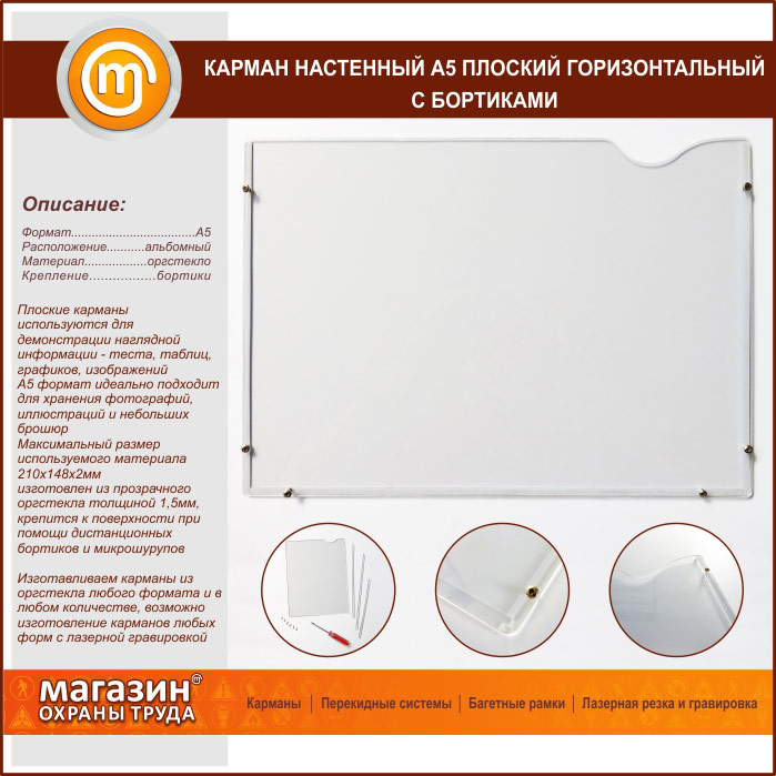 Карман настенный А5 плоский горизонтальный с бортиками в Химках купить