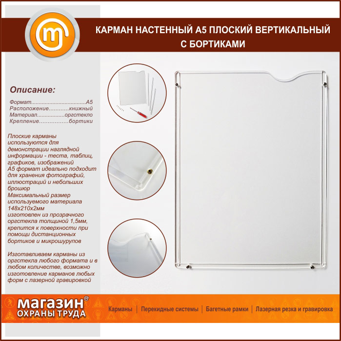 Карман настенный А5 плоский вертикальный с бортиками в Химках купить
