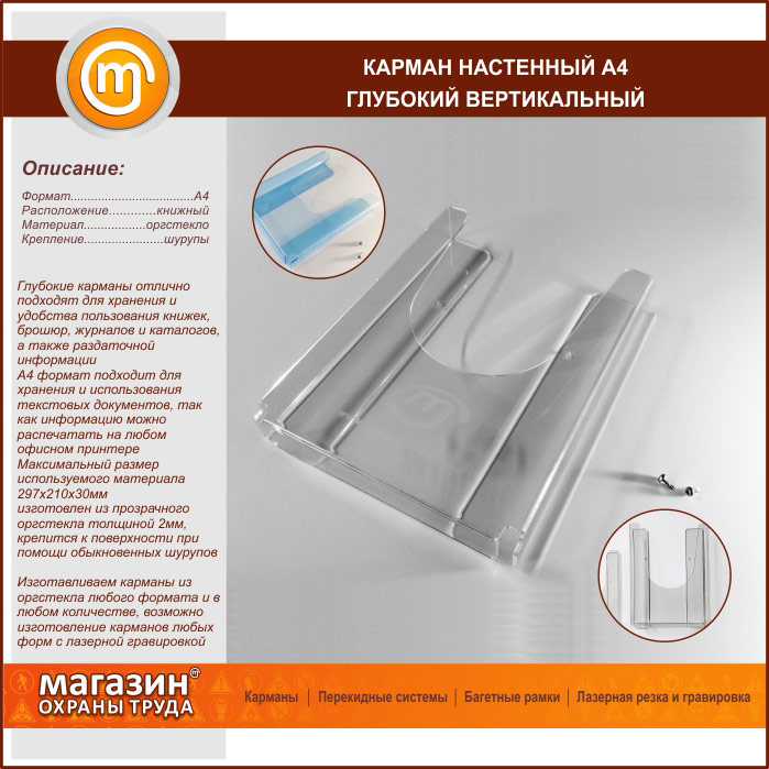 Карман настенный А4 объемный вертикальный в Химках купить