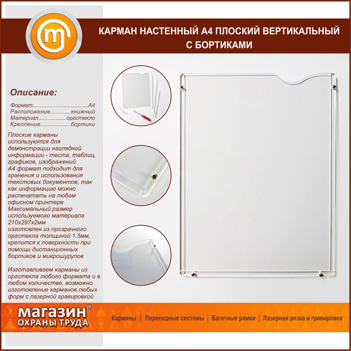 Карман настенный А4 плоский вертикальный с бортиками в Химках купить