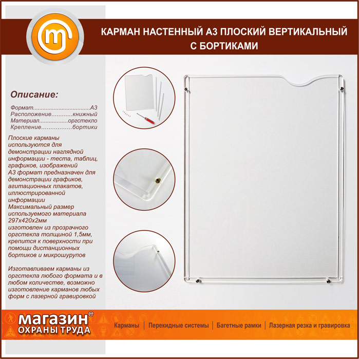 Карман настенный А3 плоский вертикальный с бортиками в Химках купить