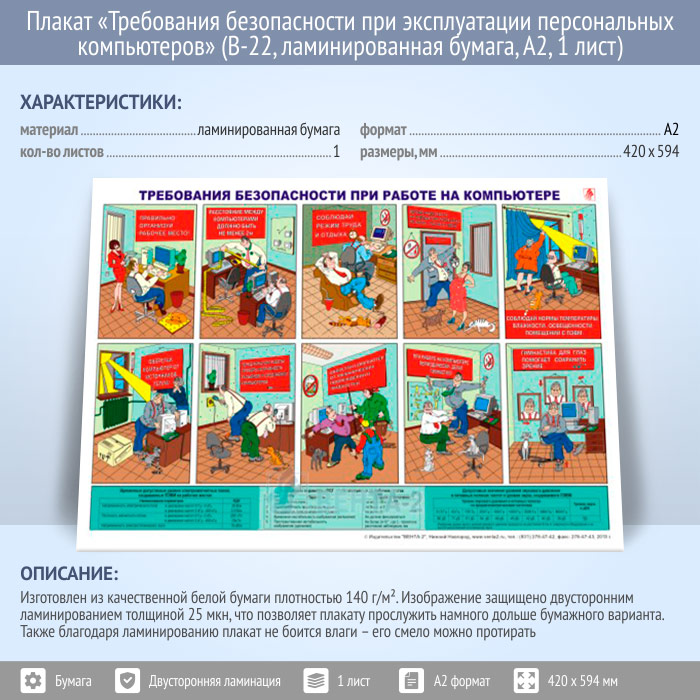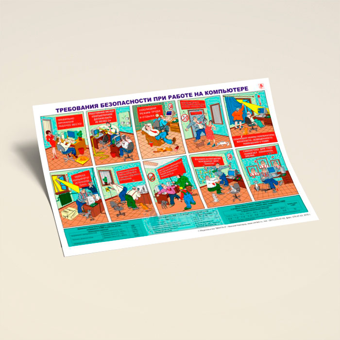 Плакат «Требования безопасности при эксплуатации персональных компьютеров» (В-22, ламинированная бумага, А2, 1 лист) в Химках купить