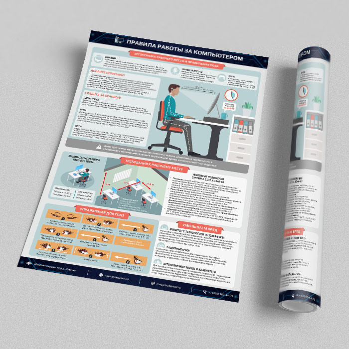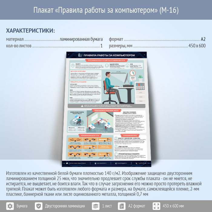 Плакат «Правила работы за компьютером» (М-16, ламинированная бумага, А2, 1 лист) в Химках купить