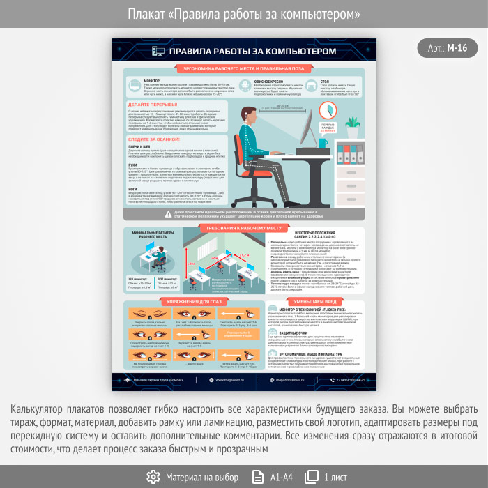 Плакат «Правила работы за компьютером» (М-16, 1 лист) в Химках купить