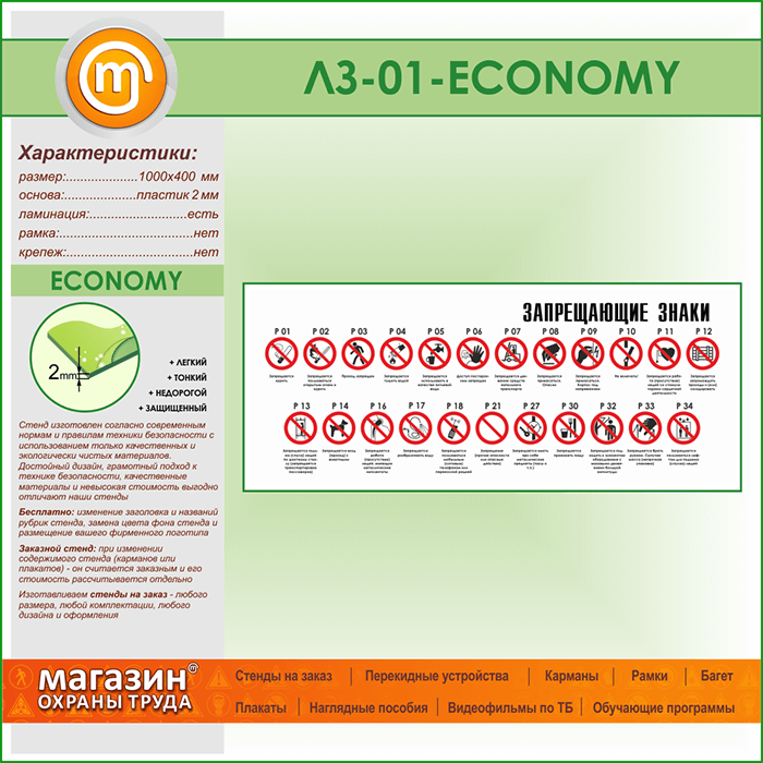 Стенд «Запрещающие знаки» (LZ-01-ECONOMY) в Химках купить