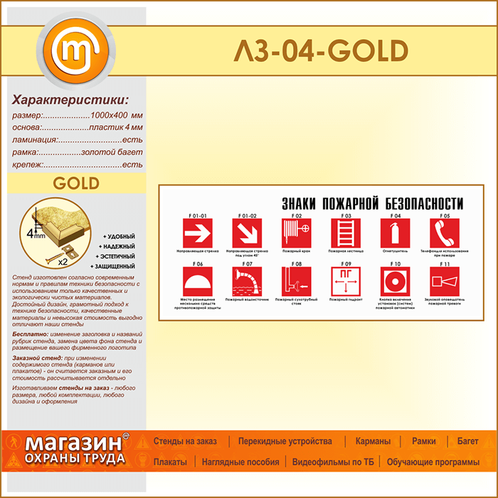 Стенд «Знаки пожарной безопасности» (LZ-04-GOLD) в Химках купить
