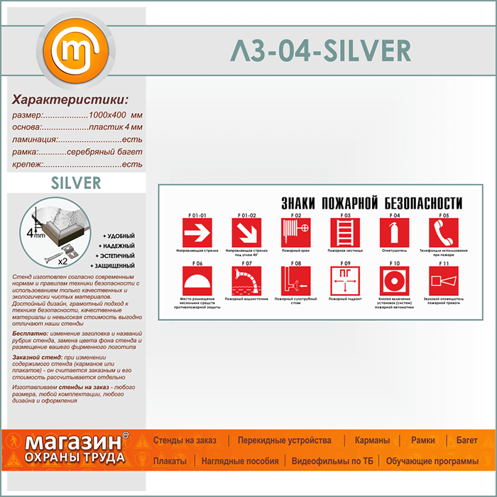 Стенд «Знаки пожарной безопасности» (LZ-04-SILVER) в Химках купить