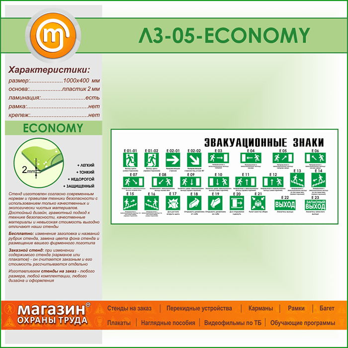 Стенд «Эвакуационные знаки» (LZ-05-ECONOMY) в Химках купить