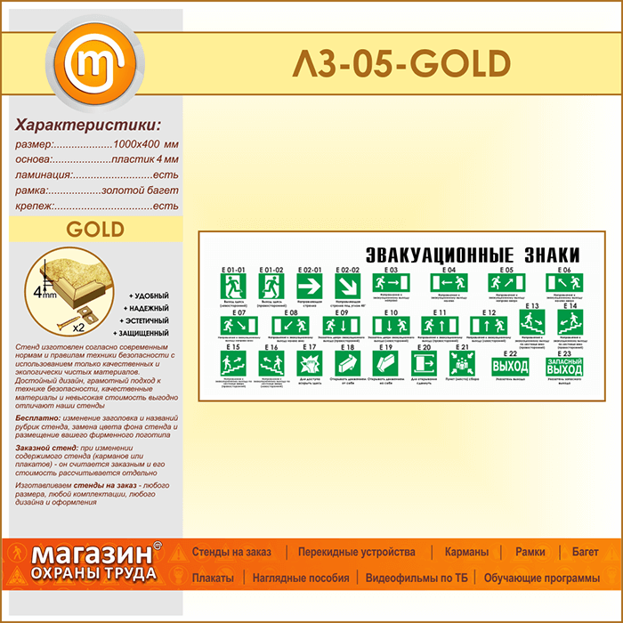 Стенд «Эвакуационные знаки» (LZ-05-GOLD) в Химках купить