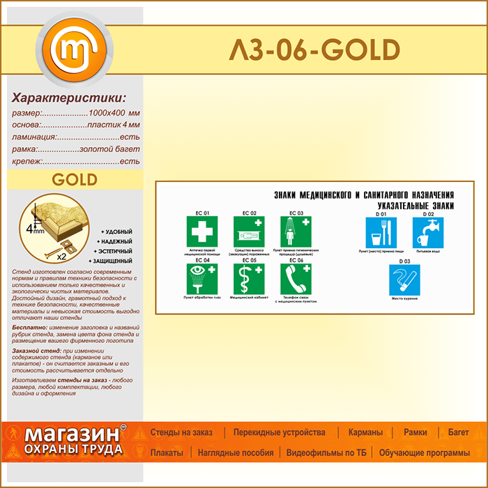Стенд «Знаки медицинского и санитарного назначения. Указательные знаки» (LZ-06-GOLD) в Химках купить