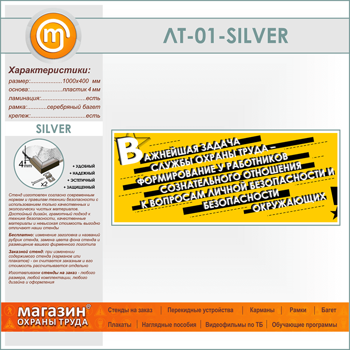 Лозунг «Важнейшая задача службы охраны труда...» (LT-01-SILVER) в Химках купить