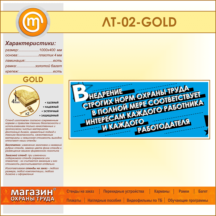 Лозунг «Внедрение строгих норм охраны труда...» (LT-02-GOLD) в Химках купить