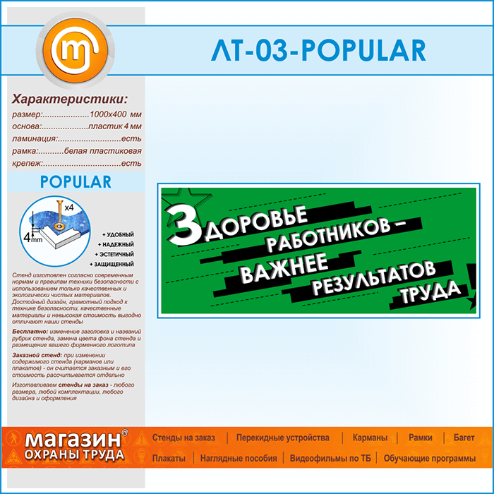 Лозунг «Здоровье работников - важнее результатов труда» (LT-03-POPULAR) в Химках купить