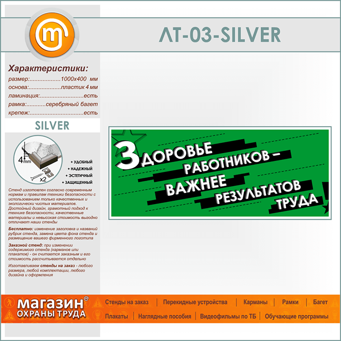 Лозунг «Здоровье работников - важнее результатов труда» (LT-03-SILVER) в Химках купить