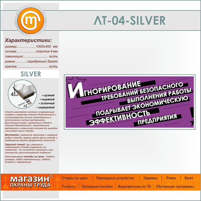 Лозунг «Игнорирование безопасного выполнения работы...» (LT-04-SILVER) в Химках купить